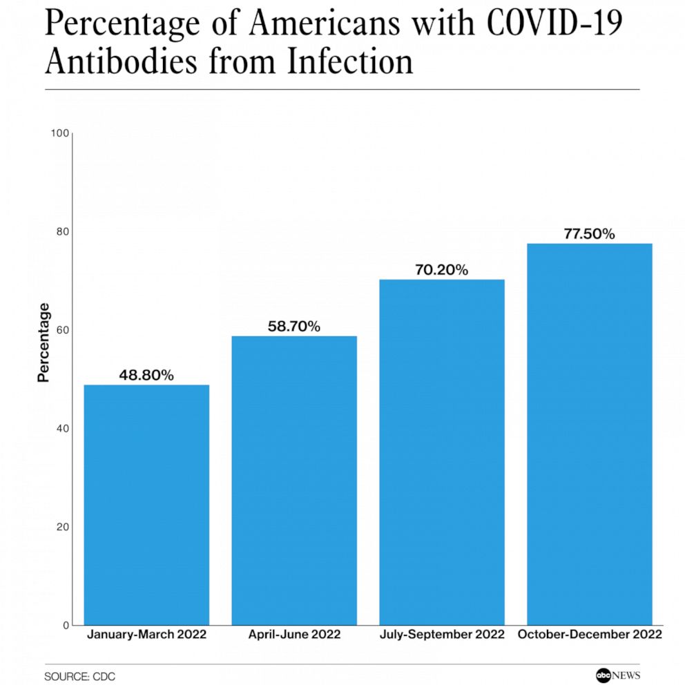 美国疾病控制与预防中心(CDC)一直在追踪血清流行率——血液中的抗体,通过在2022年1月至12月期间从全国范围内的献血者那里收集样本