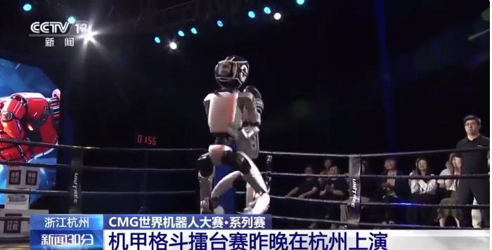 5月25日晚,《CMG世界机器人大赛·系列赛》机甲格斗擂台赛在杭州举行,这是全球首个以人形机器人为参赛主体的格斗竞技赛事。