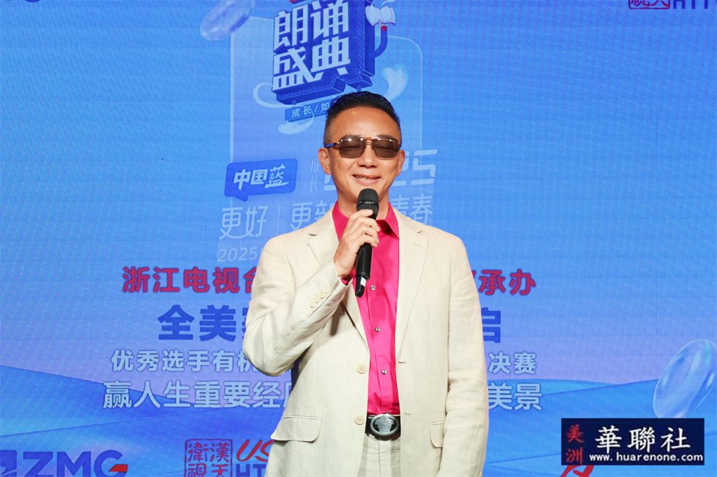 【美洲华联社洛杉矶帕萨迪纳讯】2025年6月25日,由浙江广播电视集团(ZMG)授权、美国汉天卫视(HTTV)承办的第七届“中国蓝朗诵盛典”美国赛区新闻发布会在汉天卫视演播大厅隆重召开,标志着这一中美语言艺术交流的品牌赛事第二次登陆美国。知名艺术家浩瀚、雕龙朗诵艺术团副团长王玲、美国传承杯艺术节主席邬素斐等嘉宾亲临现场,共同见证赛事启动的重要时刻。