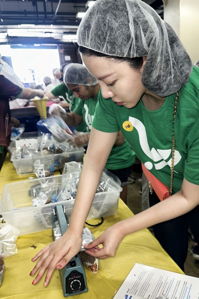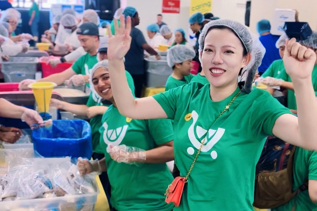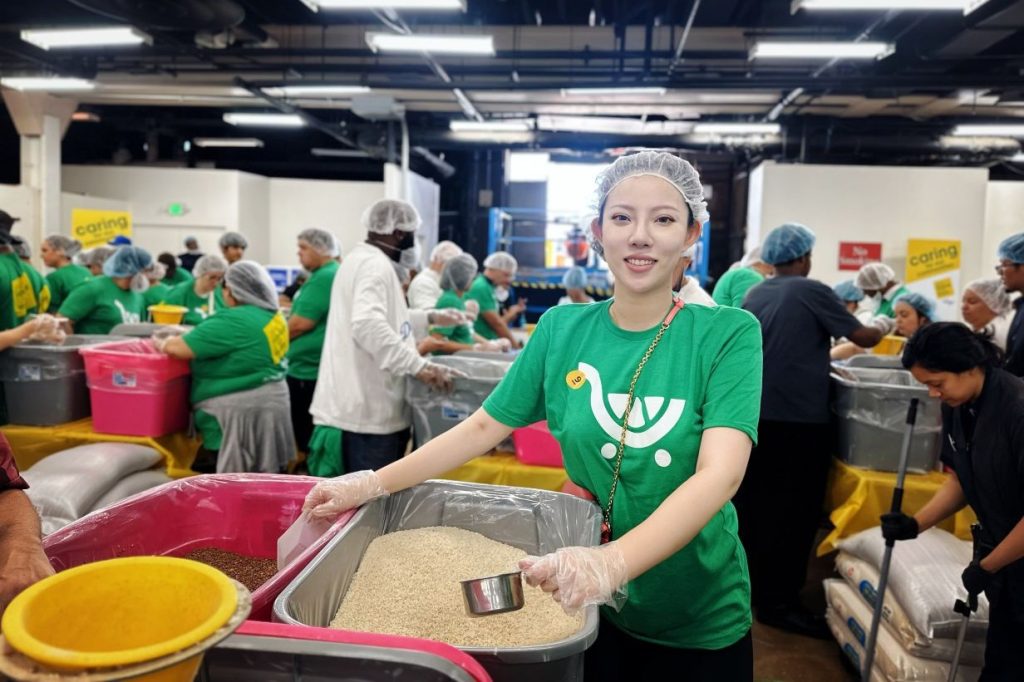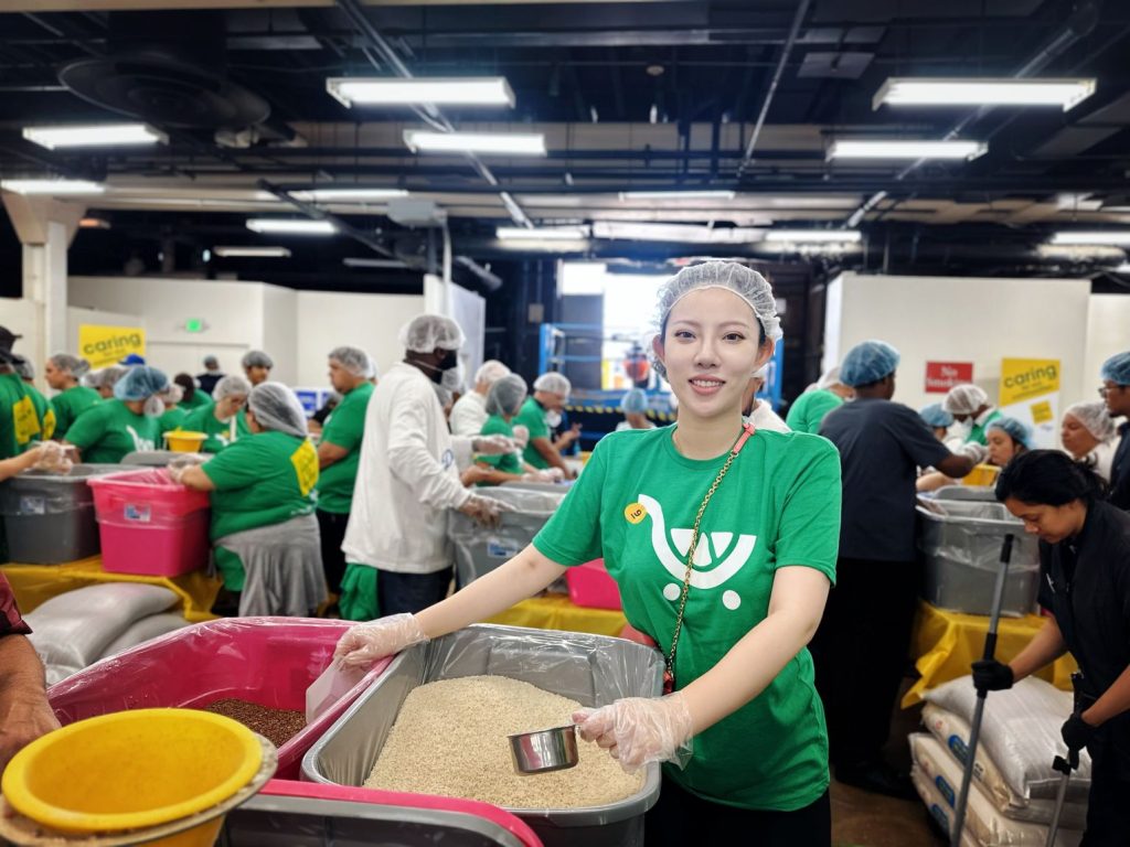 在这场堪称全美最具规模的社区慈善行动中,美国华人华侨联合总会洛杉矶分会(American Chinese United Association – Los Angeles Chapter, 简称 ACUA 洛杉矶分会)副会长王温蒂女士积极响应号召,身着志愿者统一绿衣,亲自参与现场物资分装。作为一名长期活跃于南加州社区服务、青年赋能与跨文化交流领域的华人女性领袖,王温蒂不仅用行动诠释“服务社区”的初心,更展现了华人社群对美国主流社会公益事务的高度参与感与责任感。