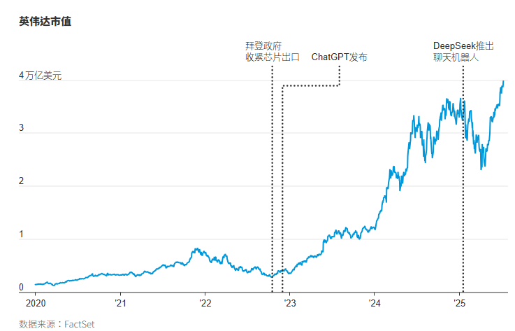 英伟达的发展过程中也经历了一些波折。拜登(Biden)和特朗普(Trump)政府都对英伟达在中国销售多款最强大AI芯片的能力施加了严格限制,几乎将这些芯片视为战略性国家安全资产。