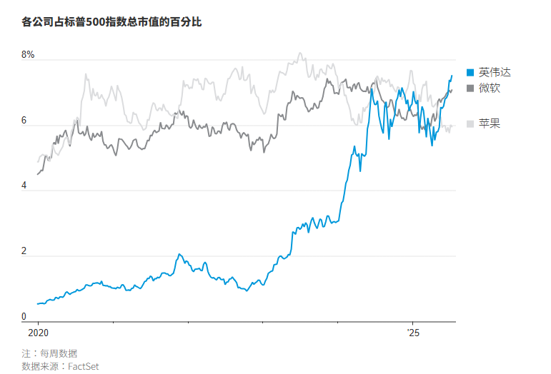 苹果公司和微软的市值也曾接近4万亿美元大关。苹果公司在2024年末收盘时市值达到3.915万亿美元,而微软上周的市值为3.708万亿美元。