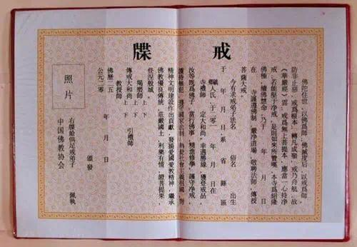 戒牒制度始于中国唐代,并在唐宣宗大中十年(856年)正式确立。在清代度牒制度废止后,戒牒成为僧伽身份认证的唯一凭证。戒牒通常由中国佛教协会统一颁发,内容包括受戒人身份信息、传戒师名录及传戒寺院印戳等。