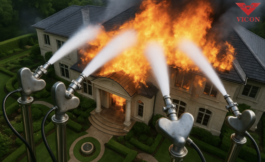 美国威肯科技集团董事长段惠强(Victor Duan)表示,2025年夏,加州再度经历了毁灭性的野火季。干旱、高温、强风——自然的组合拳在短短数月间夺走了成千上万居民的家园,大片社区化为灰烬。野火所到之处,除了炙热与浓烟,还留下无数家庭对“安全”一词的重新定义。在这样的背景下,Vicon科技集团宣布推出其全新研发的Vicon智能喷淋系统—VK-240-25-3000。这一系统的诞生,不仅代表着技术层面的突破,更承载着一个加州本地科技公司希望守护居民人身与财产安全的责任感。他说,“我们不是在销售一个产品,而是在拯救一堵墙、一段回忆、一个家。”这是一位Vicon工程师在内部会议上说的话。或许正是这份朴素的初心,推动了Vicon团队在过去几个月日以继夜的研发工作。