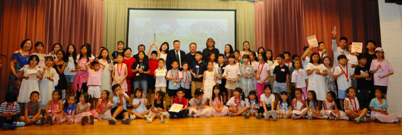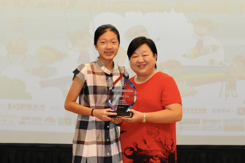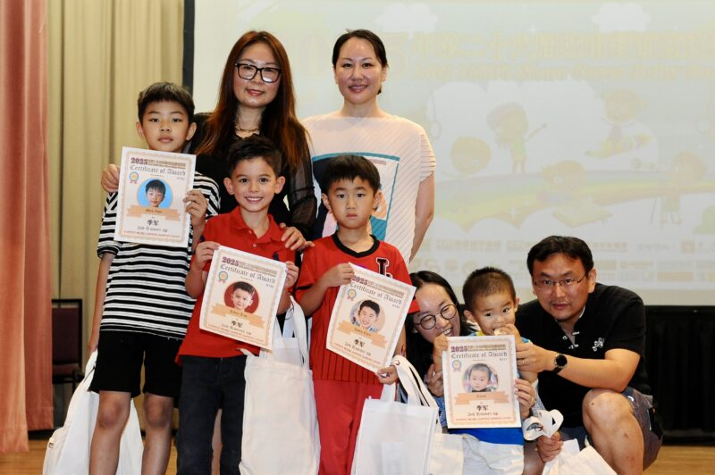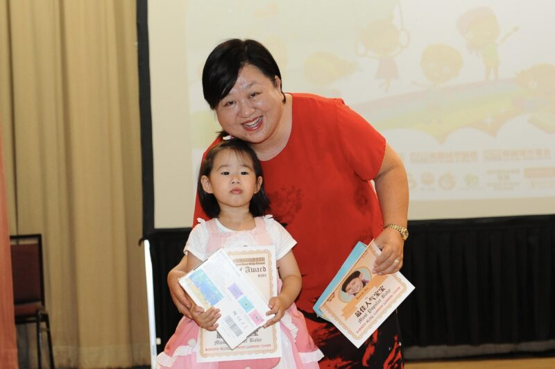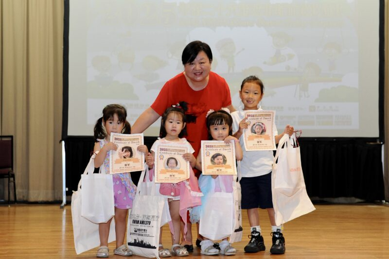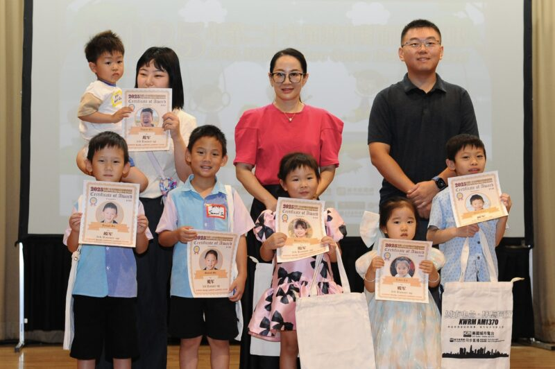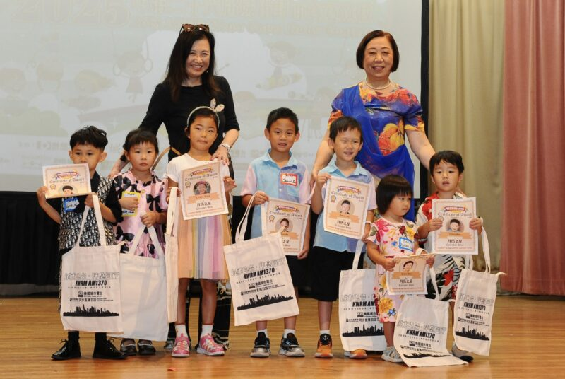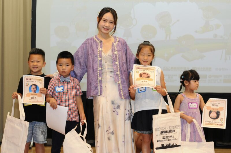 主办单位、美国鹰龙传媒公司总经理苏林淑婷为「城市封面宝宝选拔」亚军获奖小朋友颁奖