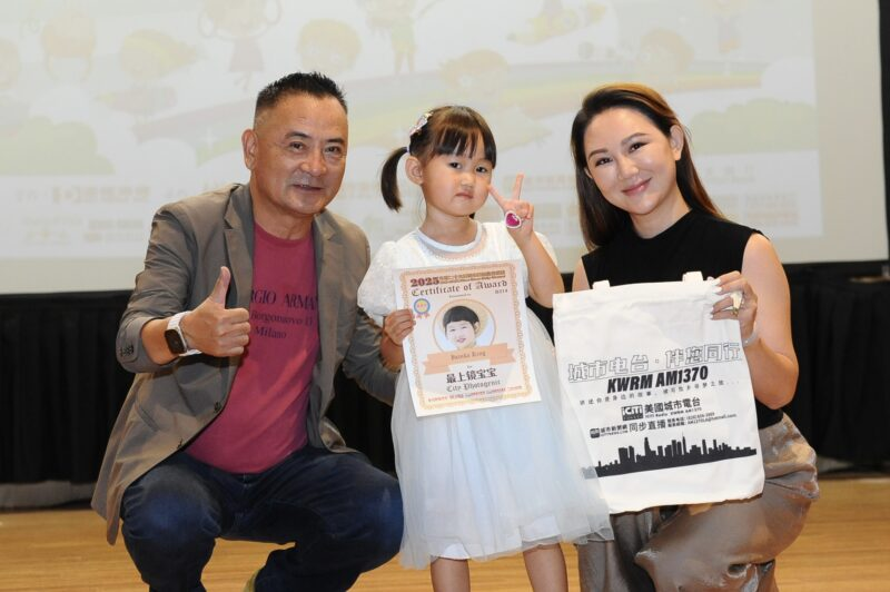 美国南加州华人联合总会会长杨逸凡代表、女性委员会负责人喻萍、帝豪食品董事长陈定华致辞并为「城市封面宝宝选拔」“最上镜宝宝”获奖小朋友颁奖