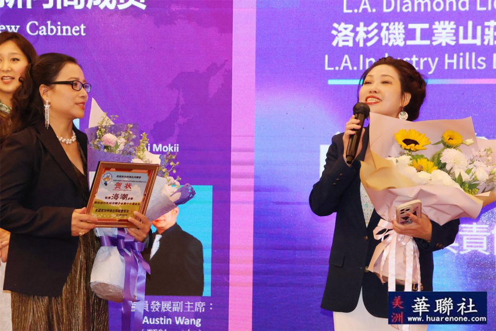 湖北同鄉會會長李宏建為海潮頒發賀狀,理事李玲獻花祝福,寄予厚望。