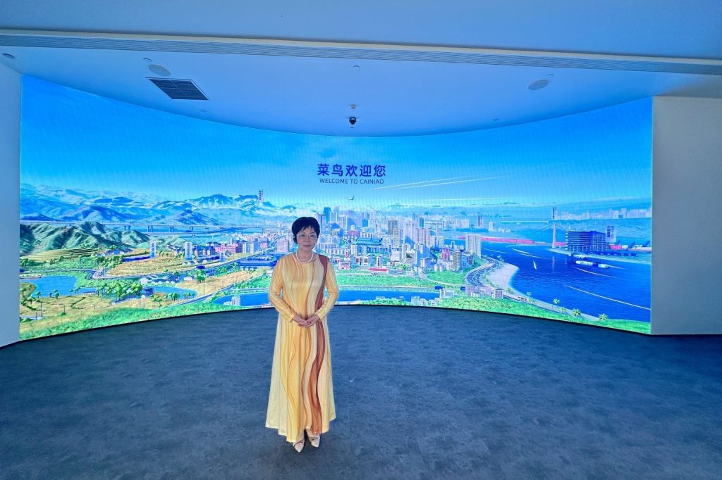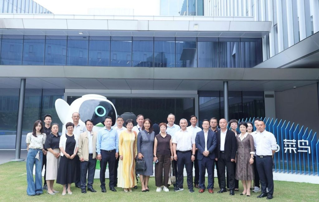 在杭州未来科技城城市展馆,参访团进门就看到屏幕上显示着 “我负责阳光雨露、你负责茁壮成长”,浙江省秉持着这一理念不断地优化营商环境。余杭区作为“全省经济第一区”,在科技创新、高端人才引进、产业集聚和企业国际化布局等方面的成功经验,值得推广和借鉴。参访团还走进菜鸟集团,考察了菜鸟的全球智慧物流网络,现场观摩了自动化仓库和机器人分拣系统的运作,对菜鸟的全球化、智能化、绿色化和创新化,大家深为感叹。“秉持菜鸟之心 超越鸿鹄之志”是菜鸟的座右铭,体现了菜鸟的企业文化,还印在公司瓶装水的包装上。