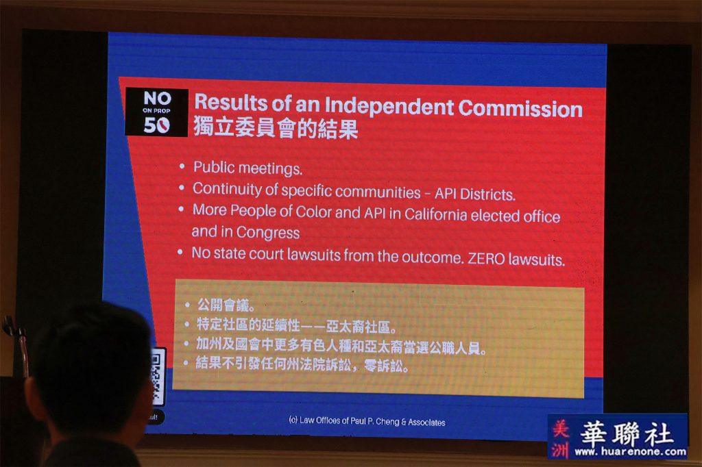 本次论坛特邀蒙特利公园市市长杨安立律师(Elizabeth Yang)与亚凯迪亚市市议员郑博仁律师(Paul P. Cheng)分别担任正反方代表,围绕第50号提案展开深度說明。