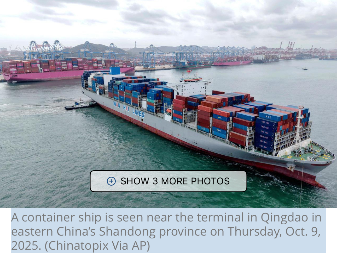 这发生在中国宣布将对美国船只征收新的港口费用之后,作为对美国计划对停靠在该国的中国船只征收港口费用的反制措施。北京还扩大了针对锂离子电池、稀土及相关技术的出口控制范围。