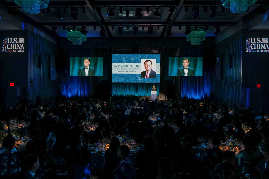【美洲华联社10月15日华府讯】中国驻美国大使馆网站消息,2025年10月14日,美中关系全国委员会在纽约举行2025年度颁奖晚宴,中国驻美国大使谢锋应邀出席并致辞。美中关系全国委员会董事会主席巴尔舍夫斯基、执行副主席格林伯格、会长欧伦斯及辉瑞公司董事长艾伯乐等约400人参加。晚宴上,美中关系全国委员会向艾伯乐颁奖。