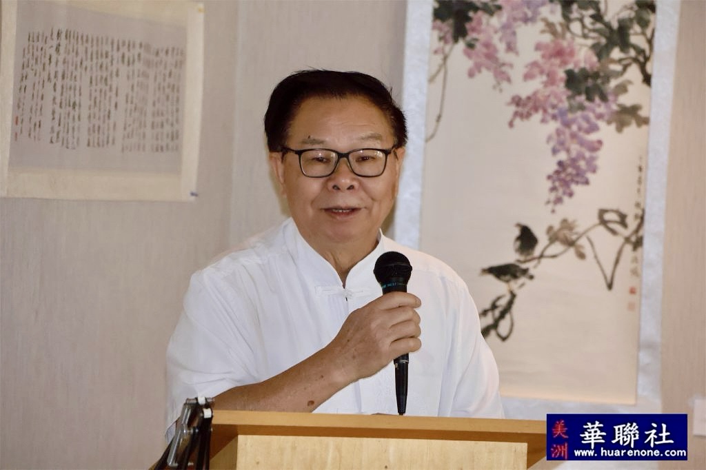 南加州先锋中华文化联艺中心副总裁、书法家甘富忠致词表示,金秋十月,翰墨飘香。与诗词一样,书法艺术的背景也是中国传统文化。
