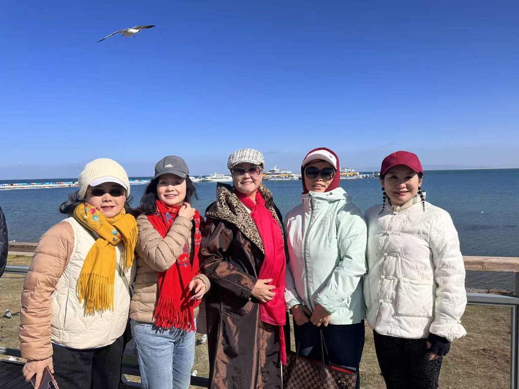 青海湖(英语:Qinghai Lake;藏语:mtsho-sngon;蒙古语:Köke Naγur)。网上对青海湖有诸多描述,在此不赘述。和很多民众一样,青海湖是访问团成员最向往的旅游目的之一。不过令参访团惊奇的是,青海湖曾经是中国海军的鱼雷实验基地。当年的机密,如今成为中国海军发展的历史见证。联想到日前九三阅兵展示的海军尖端武器,让大家对当年的那些科技人员和官兵肃然起敬。