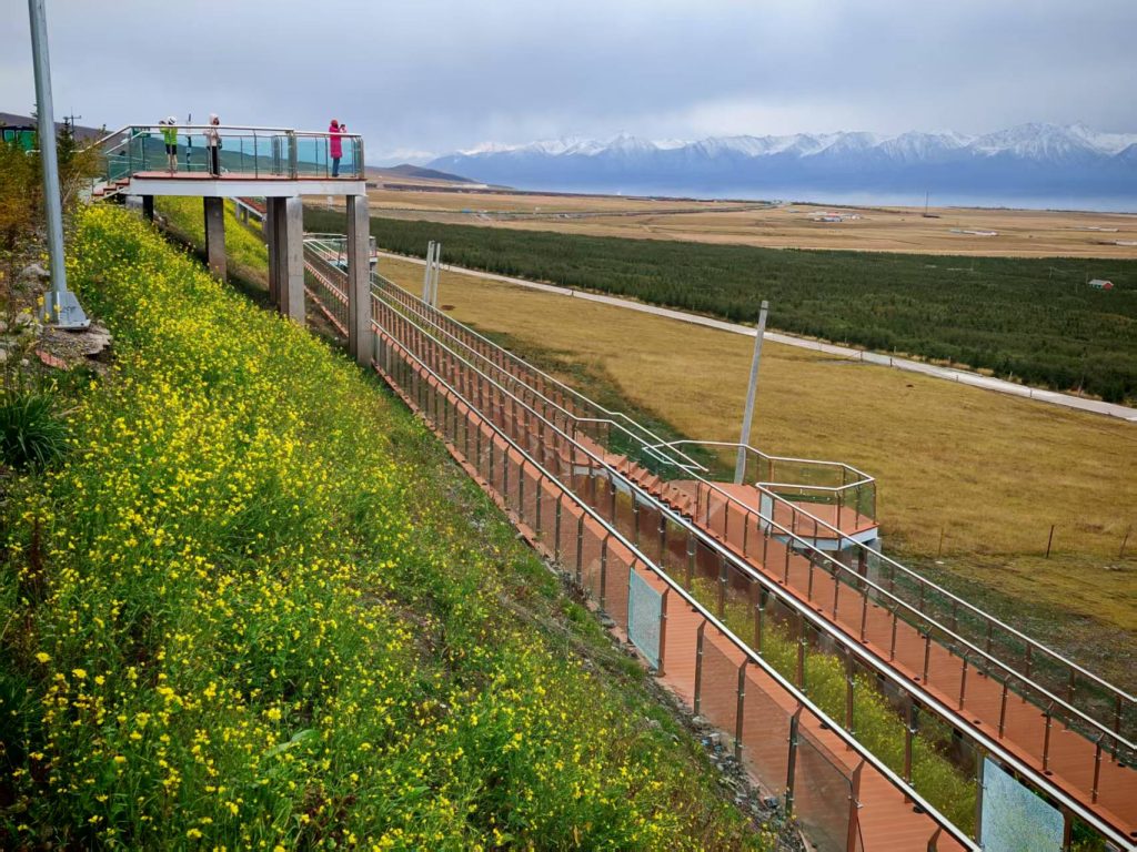 7、8月份,这里人满为患,金黄色的油菜花满世界,背后是连绵的祁连山南麓,景色用壮美形容是显然不够的。当然,参访团错过了最佳观赏时节,不过此时这里别有一番景色。