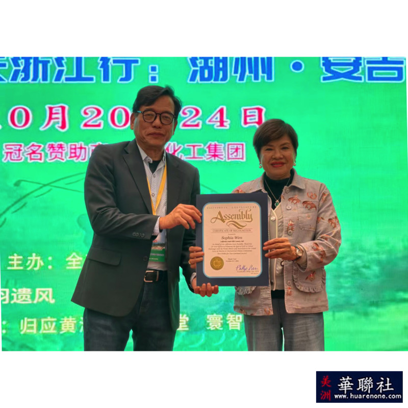 江启洸还代表加州众议员陈立德向KIKI 张、李惠琼等2颁发和状,表彰他们为促进东西方文化交流做出的贡献。