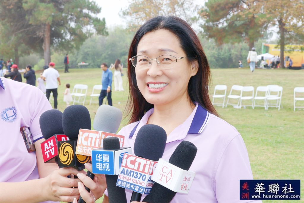 美国国会议员赵美心感谢联盟为社区带来的正能量,强调校友群体展现了华裔新生代的领导力与社会责任感。她还为松竹梅野餐会的主办方南加高校联盟和承办方的五家校友会颁发了贺状。
