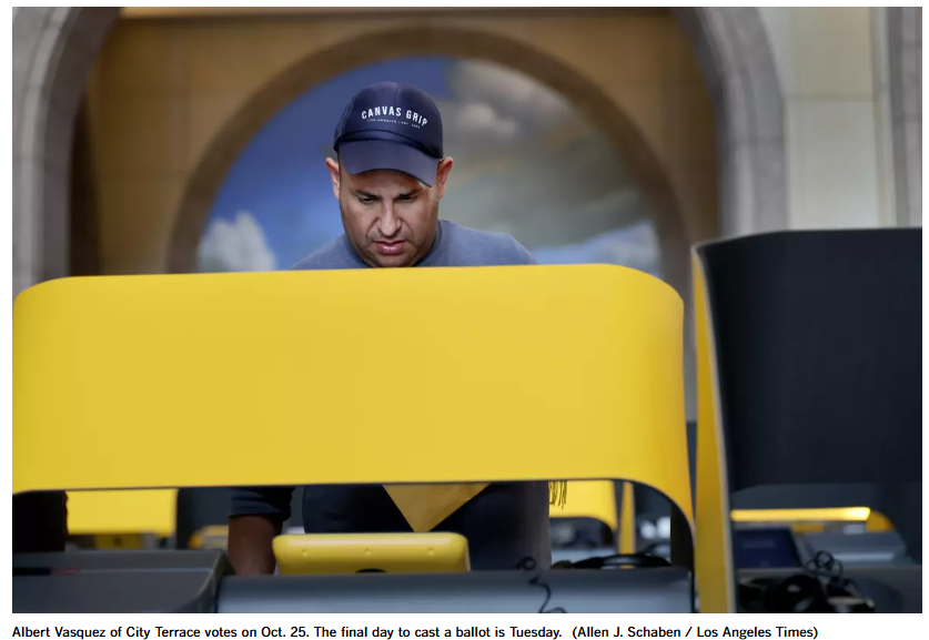 仅在洛杉矶县,就有251个投票中心将于周一上午10点至晚上7点开放。 (周二选举日当天,投票中心也将开放,时间为早上7点至晚上8点。)在投票中心,您可以亲自投票、递交邮寄选票,甚至可以注册投票并投递当日临时选票。该选票将在官员核实注册信息后进行计票。
