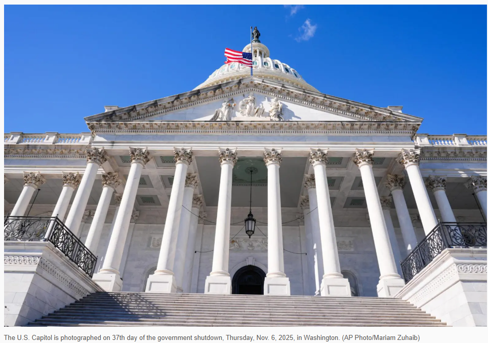 【美洲华联社11月10日华府讯】据美联社报道,众议院议长迈克·约翰逊周一表示,在少数参议院民主党议员于周日晚间打破了长达40天的僵局,并与共和党人一起投票推进一项旨在结束政府停摆的法案后,众议院议员应该“立即”返回华盛顿。