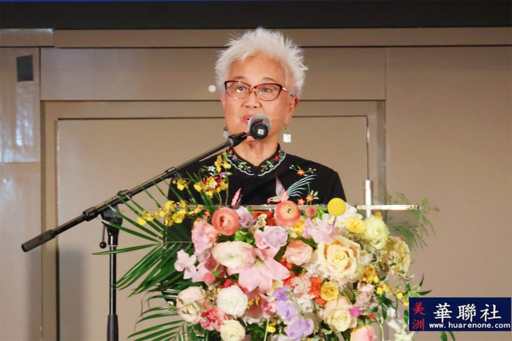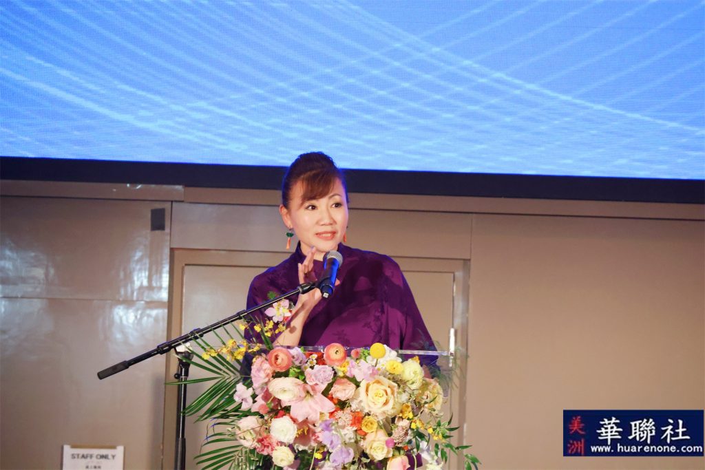 美国国会议员赵美心的代表、何振岱文化研究(美国)基金会创始人何欣晏致词