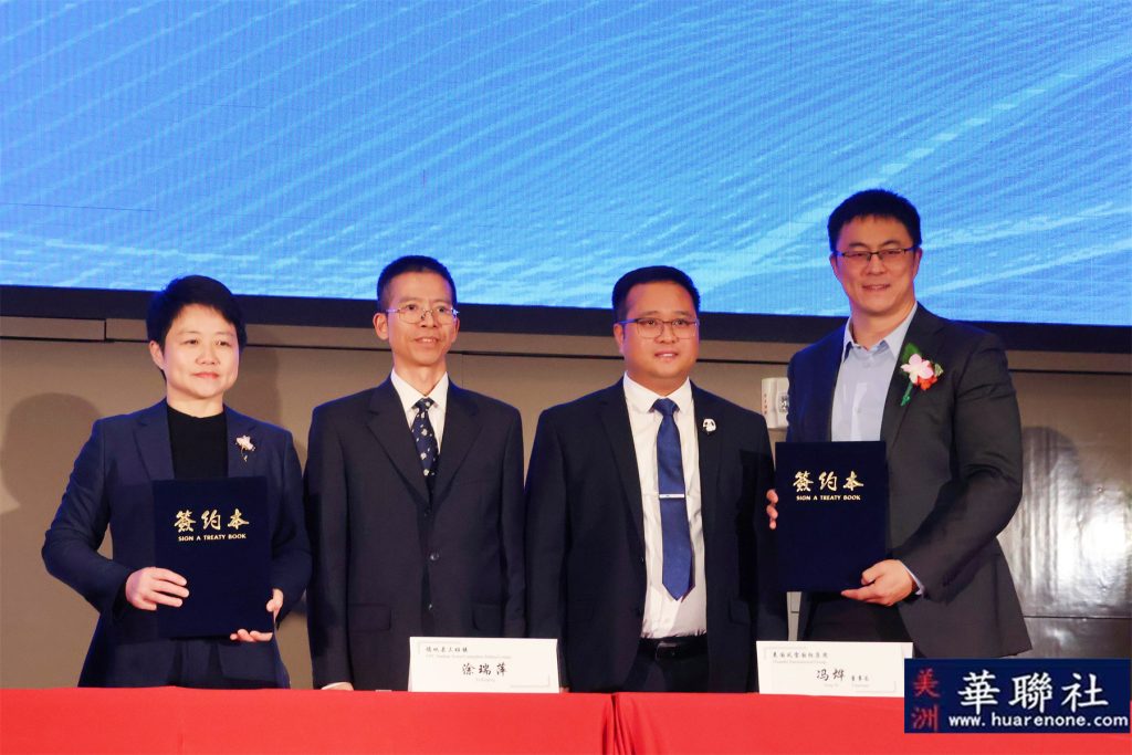 德化县三班镇人民政府代表、三班镇高级顾问涂瑞萍,与美国风雷集团代表、董事长冯烨签署双方战略合作备忘录;