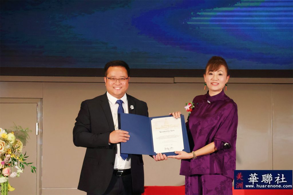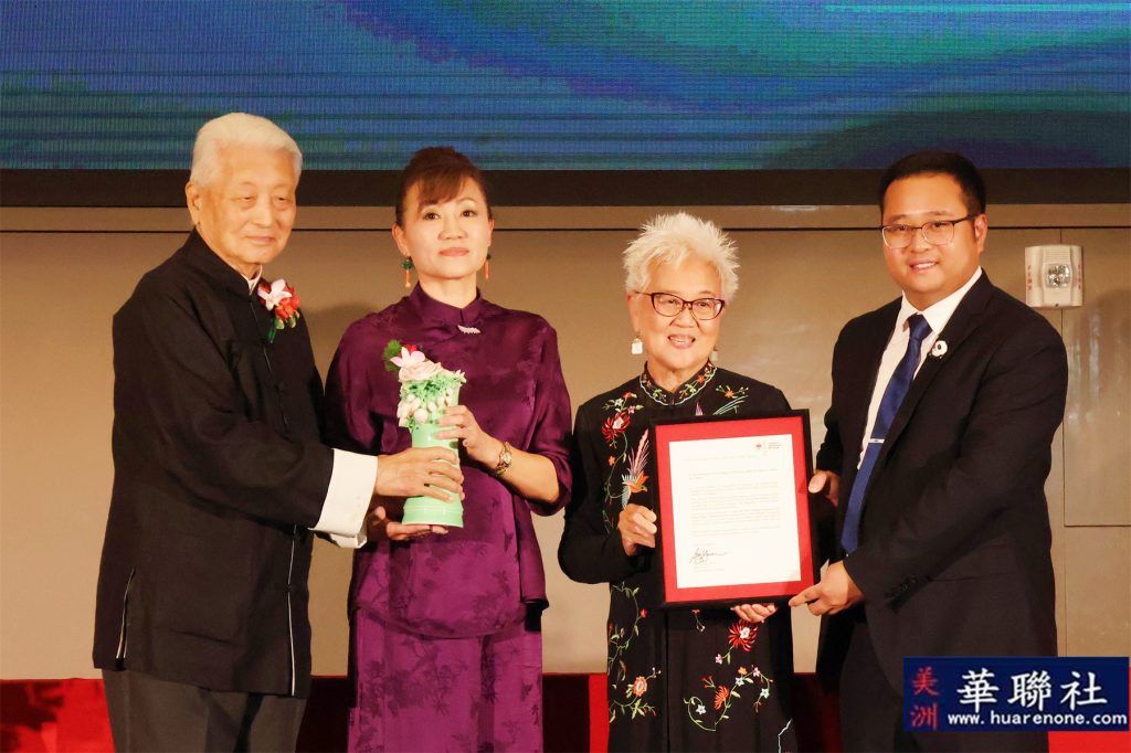 圣盖博市长Denise Menchaca、市议员丁言愉向方俊钦高级顾问颁发贺状