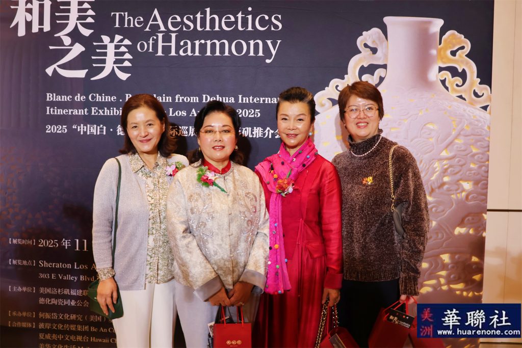 【美洲华联社11月21日洛杉矶报道】“和美之美-2025‘中国白·德化瓷’国际巡展”美国洛杉矶展览暨推介会在洛杉矶盛大举行,中国驻洛杉矶总领事馆副总领事黄洪江、政新处副主任夏凡、福建德化县人民政府高级顾问方俊钦、美国国会议员赵美心代表、何振岱文化研究(美国)基金会创始人何欣晏、加州参议员Bob Archuleta 代表Kyle Miller、圣盖博市长Denise Menchaca、市议员丁言愉(ony Ding)、核桃市副市长伍立伦、蒙特利公圆市前市长林达坚、美国中国总商会(洛杉矶)会长叶纯、洛杉矶福建联合总会主席陈明文、华美博物馆之友董事会主席阮桂铭博士、美国风雷集董事长冯烨、总裁王明明等出席并致词。赵佩瑶主持。