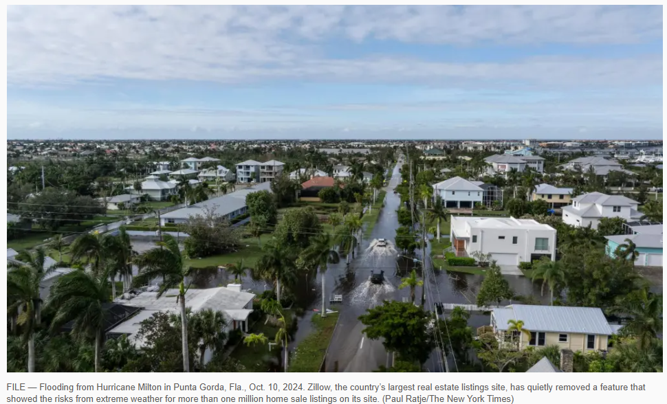 【美洲华联社12月3日讯】美国最大的房地产信息网站 Zillow 已悄然移除一项功能,该功能曾用于显示其网站上超过一百万套房屋销售信息的极端天气风险。