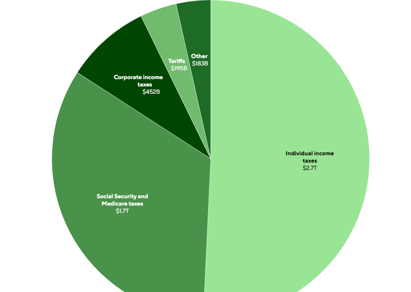 财政部数据显示,2025财年关税收入为1950亿美元,约占个人所得税总额2.67万亿美元的7%。