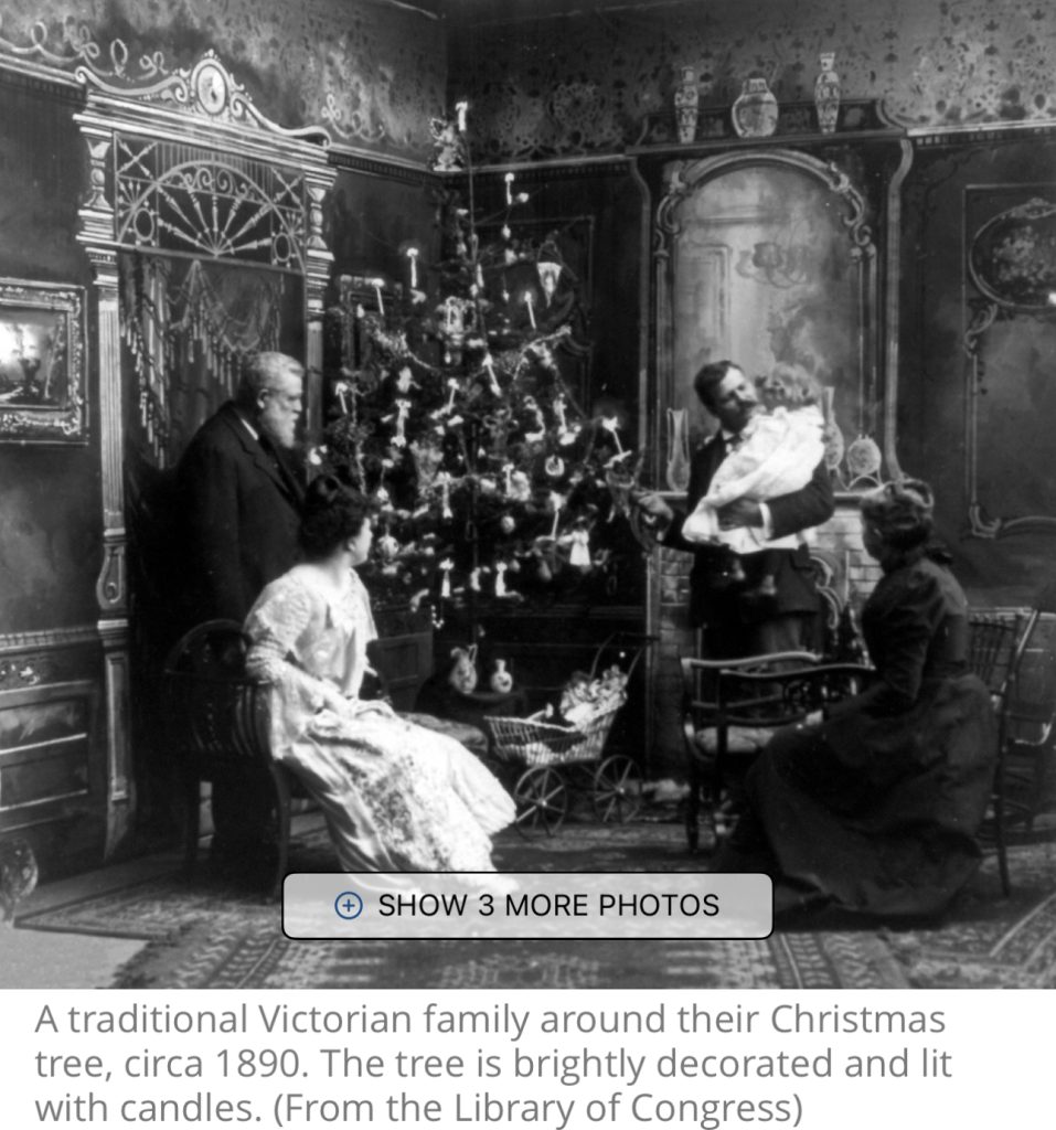 1868年1月4日,圣贝纳迪诺的《卫报》报道了当地公理会教堂的庆祝活动:“为孩子们提供了一棵圣诞树,并适当地布置了玩具和礼物。”