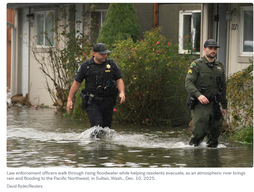 华盛顿州参议员玛丽亚·坎特韦尔在X上发帖称,她已与国家气象局进行了交谈,并对斯卡吉特河水位可能比历史最高水位高出5英尺感到“震惊”。她写道:“请务必保持警惕,并遵守疏散命令。这不仅仅是一场普通的洪水。”