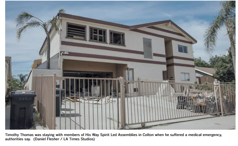警方称,蒂莫西·托马斯在科尔顿的“祂的道路灵性引导教会”(His Way Spirit Led Assemblies)居住期间突发疾病。蒂莫西去世后,该教会成员不配合调查,并提供了相互矛盾的证词,这使得案件的起诉变得困难。