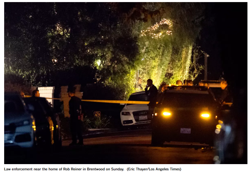 【美洲华联社12月14日洛杉矶讯】资深好莱坞影星罗伯·雷纳(Rob Reiner)及妻子周日在洛杉矶布伦特伍德(Brentwood)的家中被发现死亡,警方称这显然是一起谋杀案。