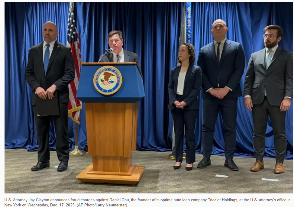 联邦检察官杰伊·克莱顿(Jay Clayton)在新闻发布会上表示,Chu多次对银行和其他信贷机构撒谎,并将欺诈行为“变成了Tricolor公司商业战略的重要组成部分”。他表示,该公司的倒闭对那些需要为信用记录不良人士提供贷款服务的购车客户造成了打击。克莱顿说:“当然,如果发生这样的事情,如果该领域存在欺诈行为,那么这些人就更难获得汽车贷款。”