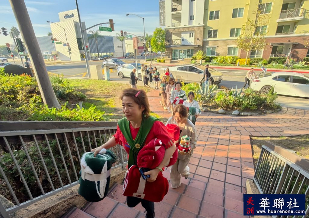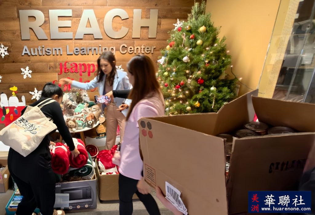 【美洲华联社12月17日洛杉矶报道】在会长张娴的带领下,美国华人妇女联合会10几位会员带着御寒、食品饮料及圣诞礼物等物品来到位于阿罕布拉市的Reach自闭症儿童训练中心,送去华裔社区的爱心,这也是美国华人妇女联合会连续第6年为这里的孩子送上圣诞的祝福。在即将过去的年,2025年美国华人妇女联合会为社区做出了诸多奉献,爱心满满。