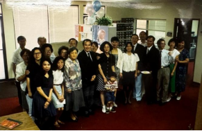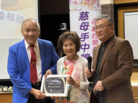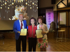 阿罕布拉首位华裔教委黄赵企晨代表加州财务长马世云为佳音社颁奖