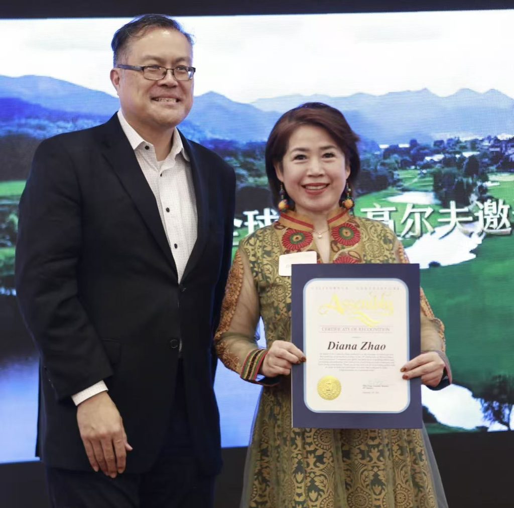 今年受奖者包括有:(1)赵宏:洛杉矶菁英狮子会会长。她率领该会会员于10月间举办高尔夫慈善赛,将盈余捐款地方教育机构。(2)岳海平,在巴西成立华人高尔夫球会,增进当地华人企业间的交流。 (3)Park Dirk朴德克,Aerokorea公司首席执行官,在南韩侨界推动华人高尔夫。(4)台湾永源集团董事长吴旻鸿,冠名赞助2025年全球华人高尔夫球在中国浙江举办高尔夫赛,促进海外华人间以球会友。(5)Larry Lam及朱家逸,协助全球高尔夫协会在香港、上海的活动。