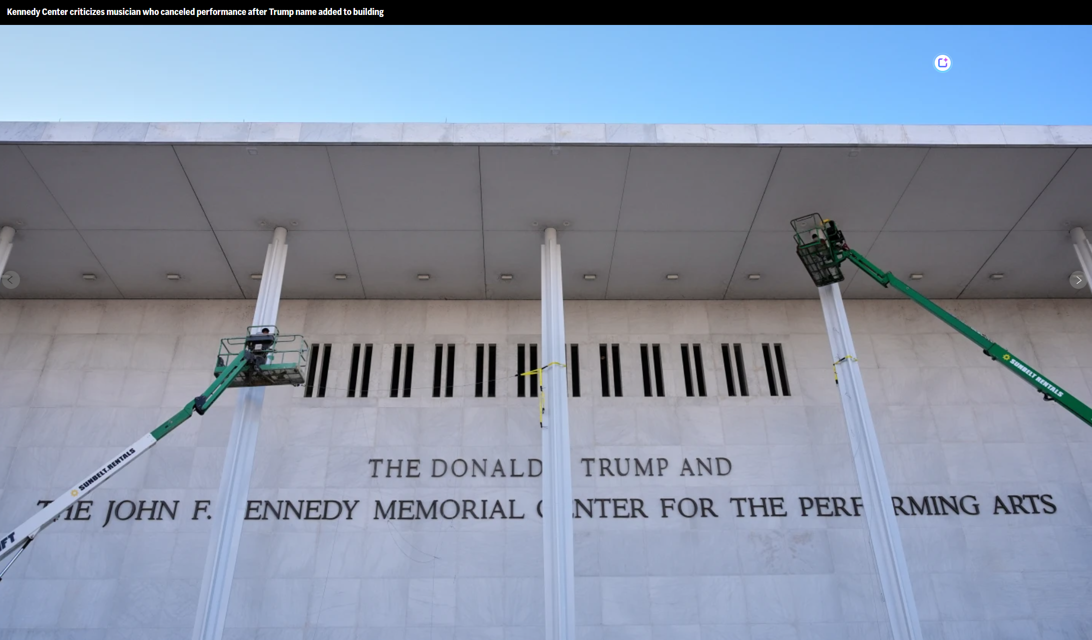 雷德说:“当我看到肯尼迪中心网站上的名称更改,几个小时后又看到建筑物上的名称更改时,我决定取消我们的音乐会。”