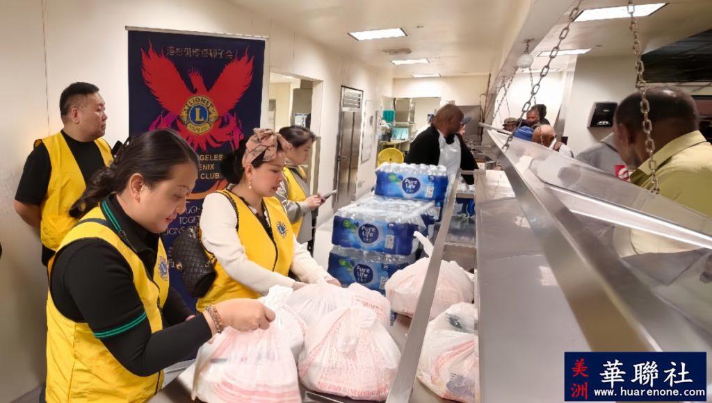 【美洲华联社12月30日洛杉矶报道】在新年来临之际,洛杉矶传奇狮子会(Los Angeles Phoenix Lions Club)与洛杉矶华夏狮子会(Los Angeles Dynasty Lions Club)携手洛杉矶市中心知名公益机构 Midnight Mission,共同开展了一场面向无家可归者的爱心餐派发行动。