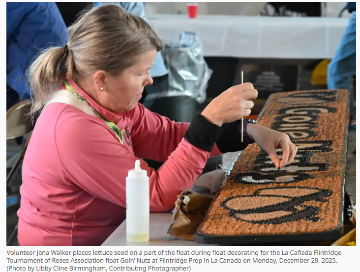 据圣盖博谷论坛报报道,来自肯塔基州路易斯维尔的Jena Walker于12月29日来到拉卡纳达弗林特里奇的玫瑰花车制作场地报到,她已经做好了充分的准备,迎接外地游客意想不到的南加州天气。