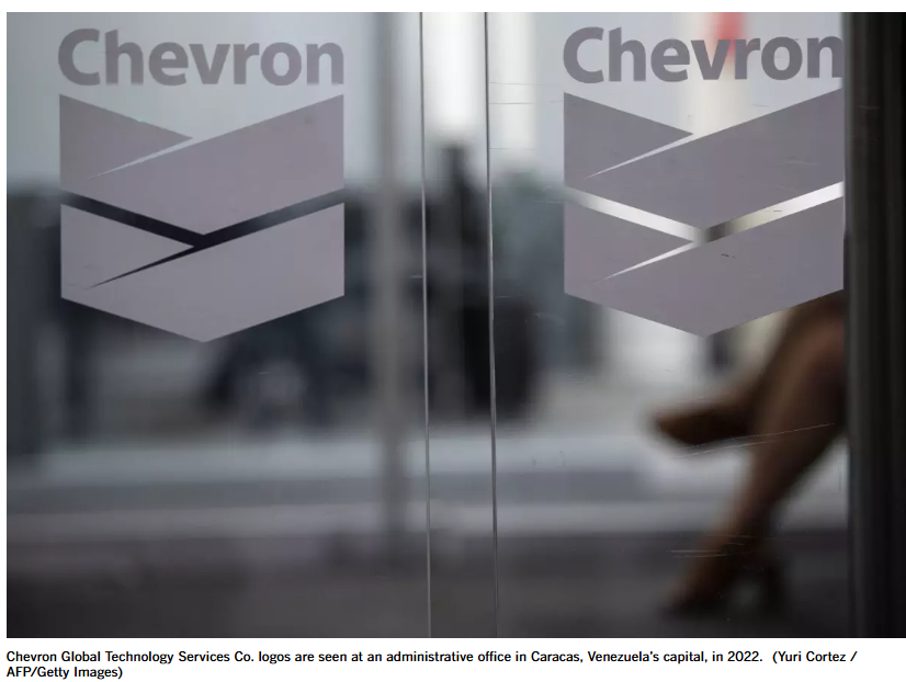 【美洲华联社1月5日综合报道】雪佛龙公司(Chevron)是一家石油巨头,创立于加州,直到最近总部也设在加州。它是目前唯一一家仍在委内瑞拉运营的外国石油公司,也是委内瑞拉最大的外国投资者。