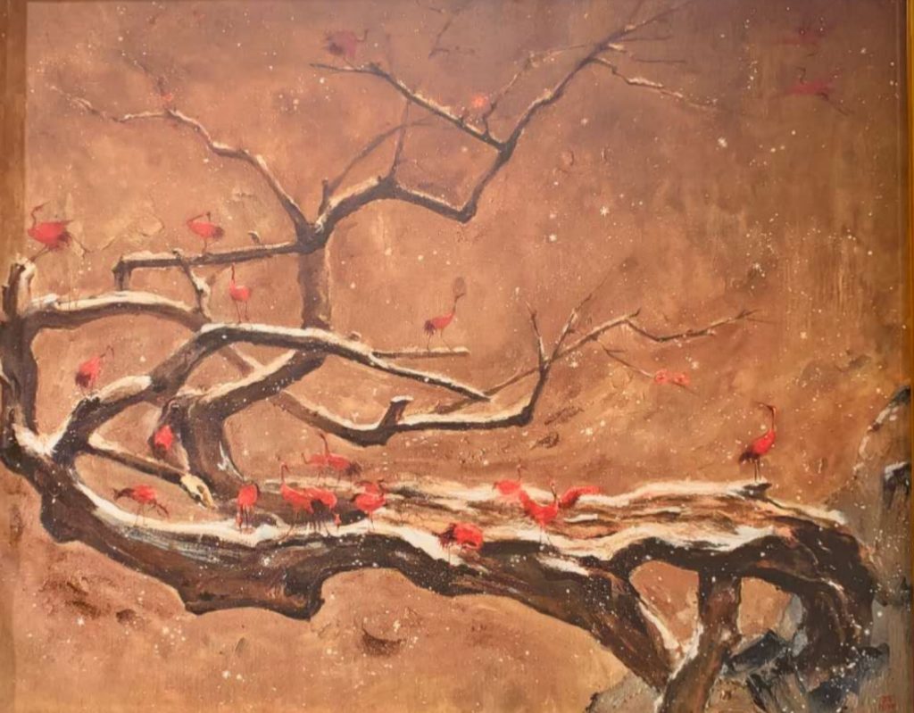 赤增绕旦的唐卡金辉流转,林小明的油画色彩奔涌,杨丰羽的水墨意境悠远,张军的工笔细腻入微……更有罗镜泉、王秉彝(已故)、全心(已故)、丁绍光等前辈大师遗风可溯,郭持宝、余小传、陈一心等中坚力量锐意创新,龚心甫、王克甲等老将宝刀未老,青年才俊张峥嵘、张艳、卓娅等锋芒初露。Frank Chen、吴伟、韩林、李雷等海外华人艺术家亦携佳作共襄盛举。