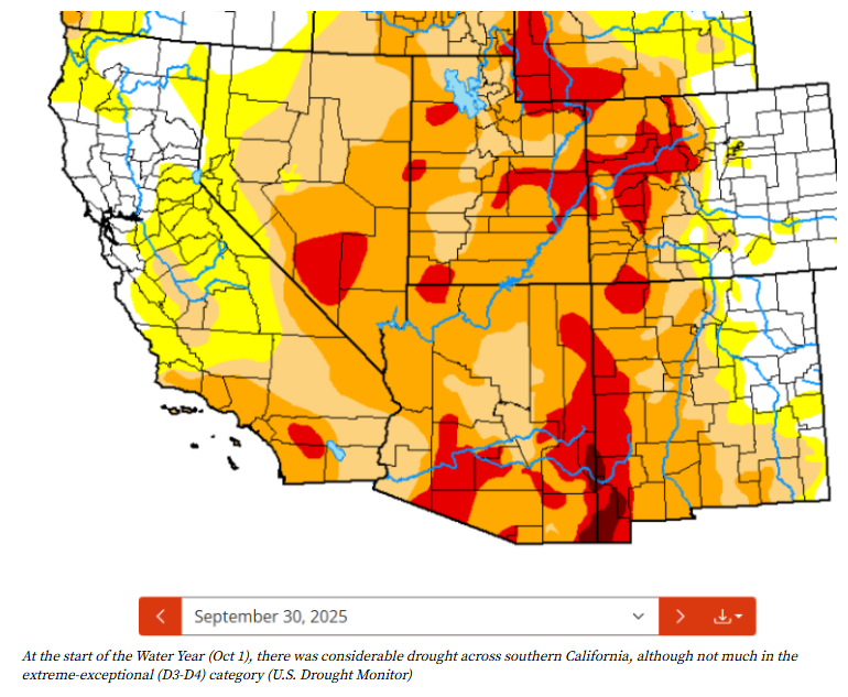 气候预测中心的预报员里克·廷克告诉KTLA,“12月中旬之后的降水是压垮骆驼的最后一根稻草。在10月1日水文年开始时,南加州大部分地区都处于干旱状态,尽管该地区被列为极端到特大干旱的地区相对较少,而11月中旬异常潮湿的天气消除了大部分干旱。”