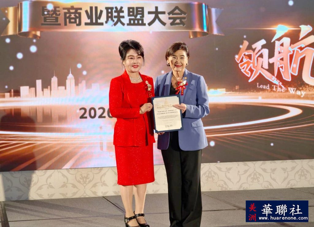路霞和朱京一宣布,聘请美国华人社团联合会(美华联)主席张勇等为美国东北总商会荣誉主席,聘请美国青岛总商会会长许月等为荣誉会长,聘请美国浙江总商会执行会长宣国军为荣誉顾问。