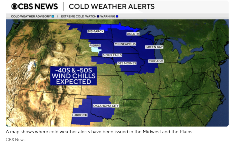 这将导致气温远低于往年同期平均水平,甚至在某些地区出现破纪录的低温。暴露在这种危险的严寒环境中,只需5-10分钟就可能发生冻伤。预计美国北部部分地区的风寒效应将使体感温度降至零下华氏40-50度。