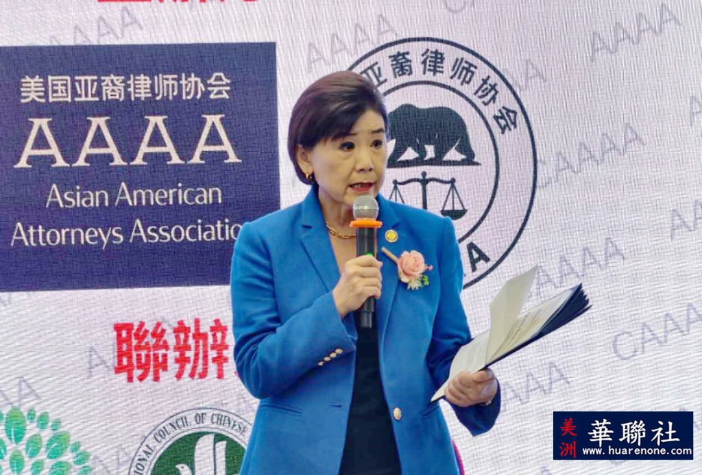 国会议员赵美心在致辞中表示,加州亚裔律师协会今天揭幕,令人振奋。她感谢创会会长华强为此做出的努力。华强律师拥有超过23年的法律从业经验,除了除了在法律领域的丰富经验,她还主持过很多社区论坛,向家庭普及重要的法律知识,包括在疫情期间举办关于房东房客权利的公开研讨会。她的这种努力真的能帮助到我们的社区。协会的创会成员也相当优秀。像蒙特利公园市市长杨安立律师,是一位杰出的律师,也是一位杰出的社区领袖。亚凯迪亚市市议员郑博仁律,也是一位非常杰出的律师,为社区做出了很大的贡献。创会成员、理事会成员都非常优秀,相信这个协会将会为社区做出贡献。