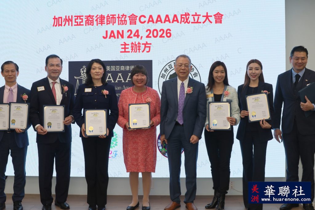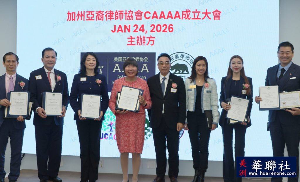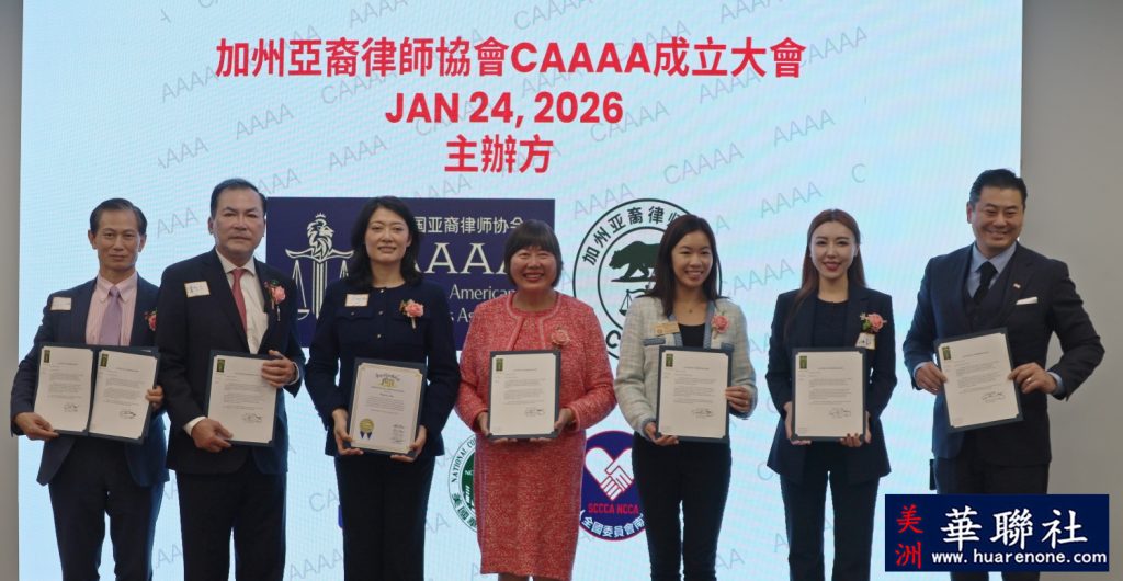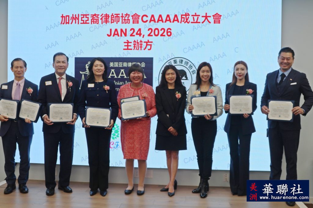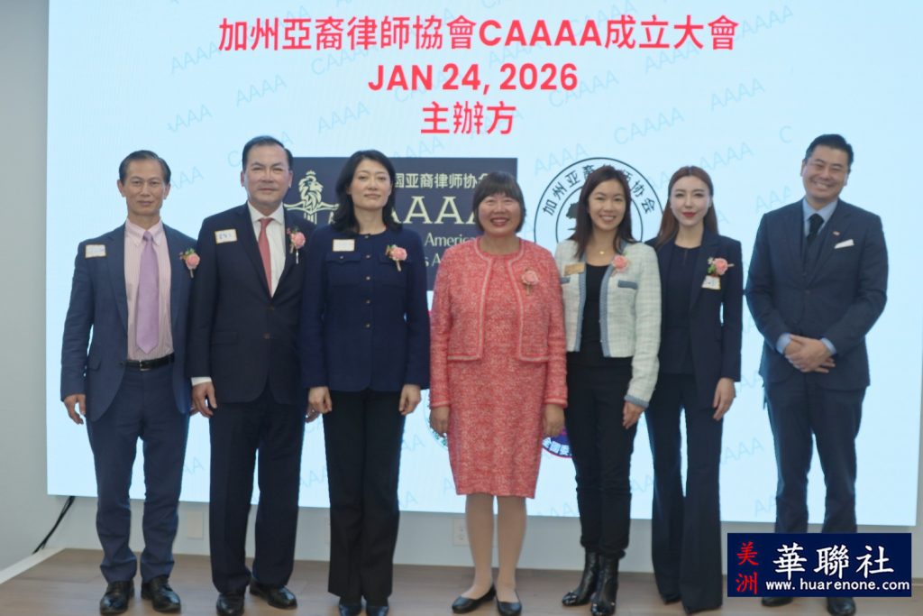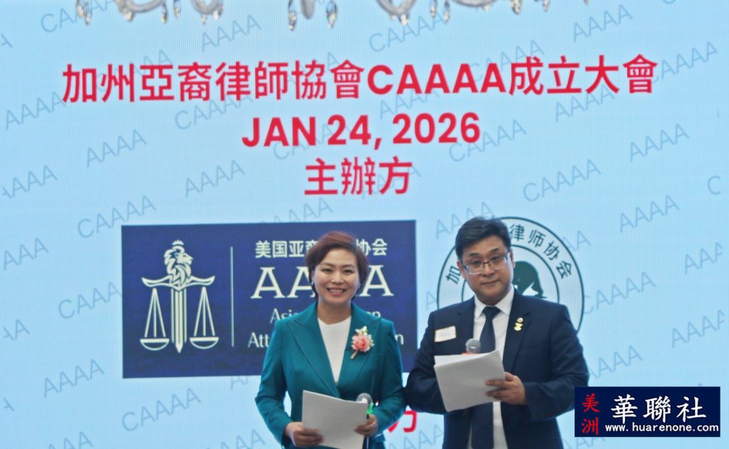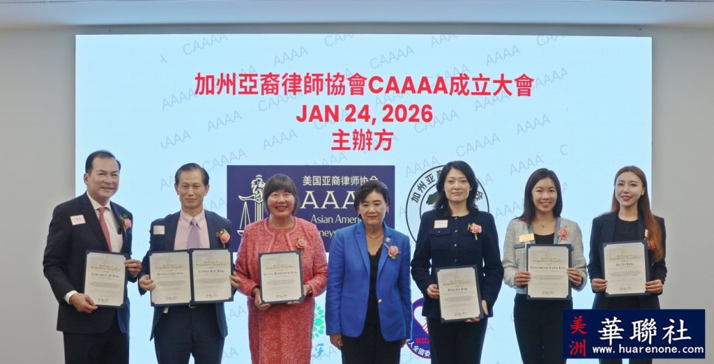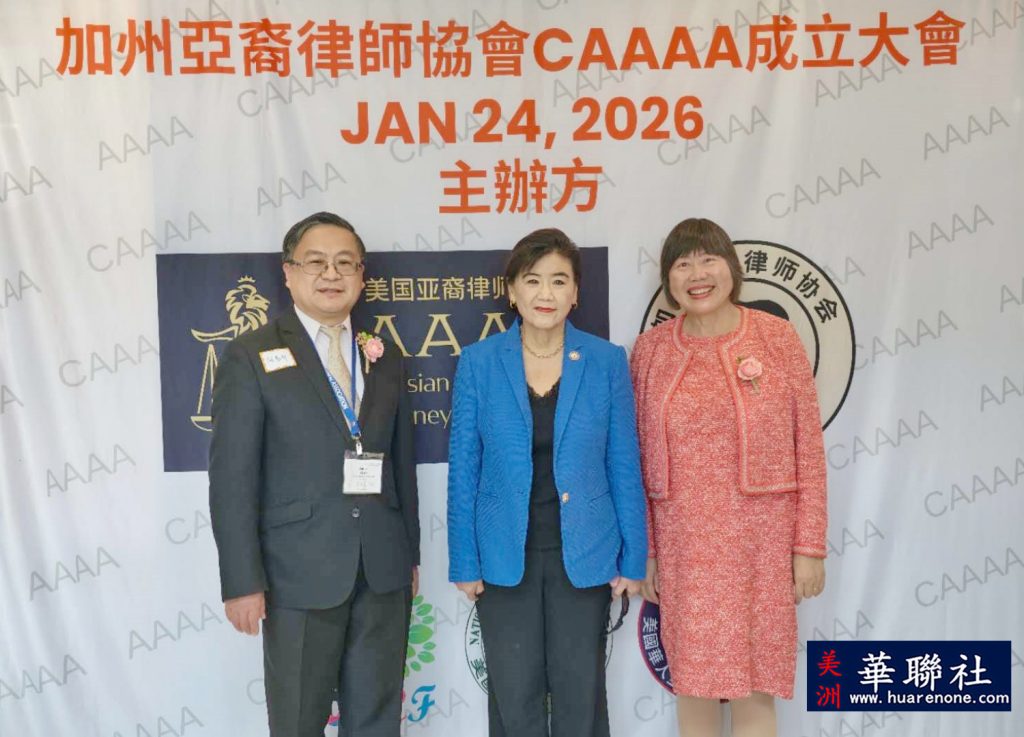 【美洲华联社1月25日洛杉矶报道】美国加州亚裔律师协会(California Asian American Attorneys Association, CAAAA)于1月24日在尔湾市隆重举行成立仪式,华裔社区知名律师华强为创会会长。美国国会议员赵美心等民选官员以及南加州律師界、侨界、商界等知名人士齐聚一堂, 百人共同见证了这一历史时刻。赵美心强调协会对于维护亚裔社区的权益非常重要,并高度评价创会会长华强以及创会会员、蒙特利公园市市长杨安立律师和亚凯迪亚市市议员郑博仁律师等对社区的贡献。