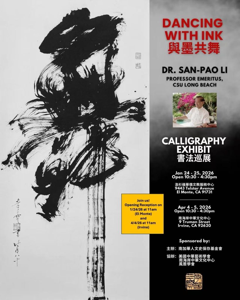 【美洲華聯社1月26日洛杉磯報道】由南加華人文史資料保存基金會主辦、美國中華藝术学会和南海岸中華文化中心協辦的加州州立大學長堤分校亞洲與亞美研究系創系系主、退休資深教授李三寶教授“與墨共舞:李三寶教授書法作品巡展”第二站,於1月24日、25日在洛杉磯華僑文教服務中心成功舉辦。文化藝術界及僑界人士對李三寶書法作品的造詣給予極高評價,稱其作品是國寶級的,並對李三寶教授致力於弘揚中華文化的努力非常欽佩。