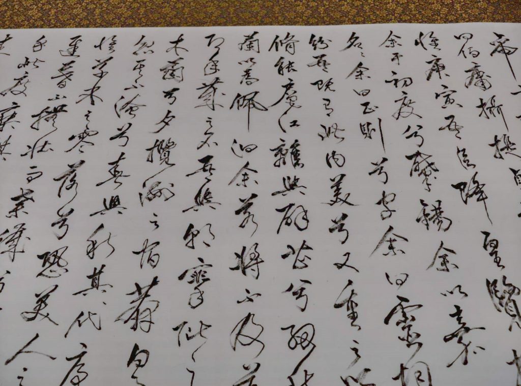 李三寶在接受採訪時非常謙虛的表示嗎,他非常感謝與墨共舞的書法巡展能夠在洛僑中心舉行,他個人覺得他是用求教的心情來舉辦這場活動。今天展出的是作品裡面一小部分,因為這個場地限制,67呎的長卷“離騷”也只能展出一不到五分之一,希望以後大家有機會能夠看到這幅作品全貌。