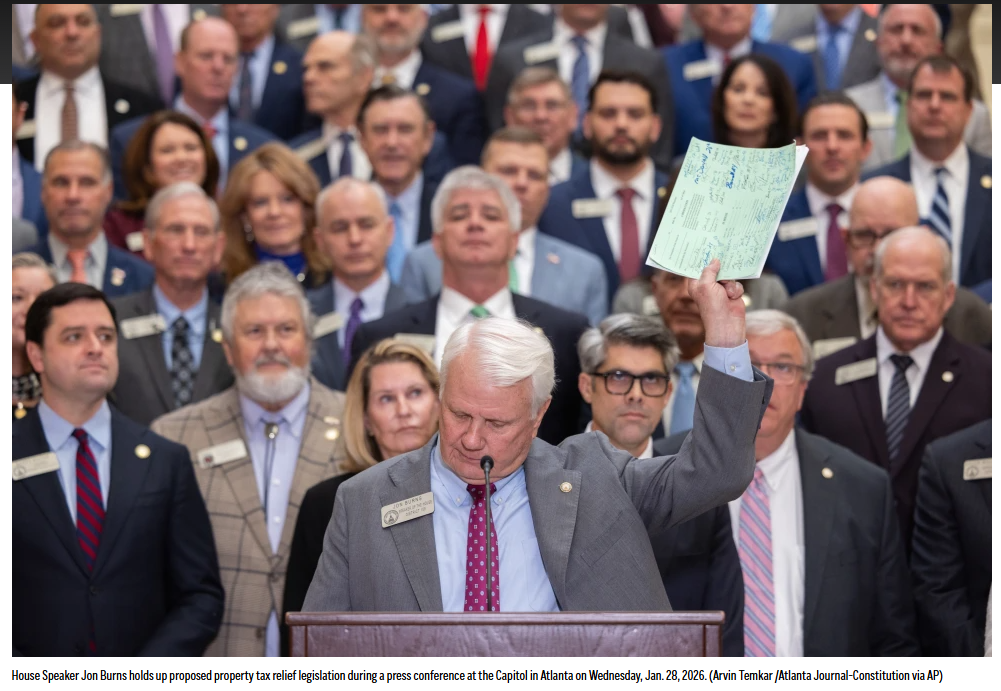 伯恩斯希望佐治亚州取消52亿美元的房主房产税,这超过了2024年征收的199亿美元房产税的四分之一,并要求各城市、县和学区转而征收现有或新增的销售税。