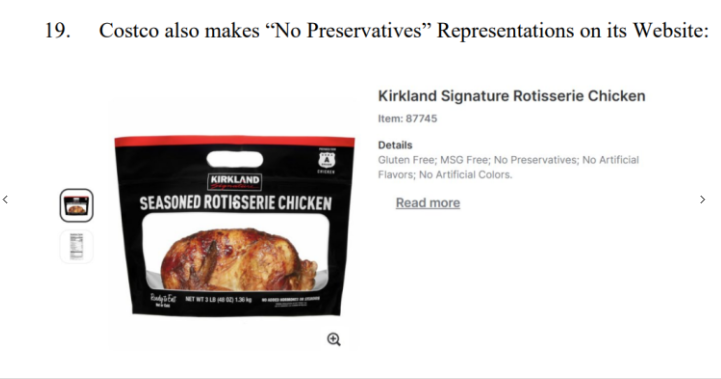除了指控好事多违反虚假广告和消费者保护法外,该诉讼还指控好事多通过“以‘不含防腐剂’为广告语,诱使原告和加州子类成员购买其烤鸡,或支付溢价购买,从而构成不正当竞争”。